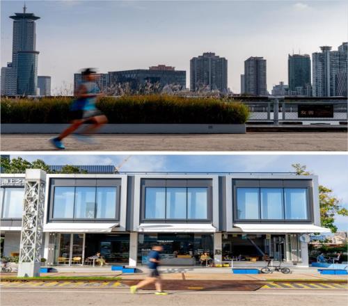 时至今日,跑步也越来越和市民的日常生活息息相关。上海不仅有世纪公园、苗江路、隆德路、卢湾体育场、源深体育场等各类型的跑步圣地,也慢慢孕育出和跑步相关的基础设施和复合空间。比如被众多跑友啧啧称道的徐汇滨江党群服务中心,既能存包换衣又能冲淋沐浴,成为不少跑者滨江跑步的起终点。